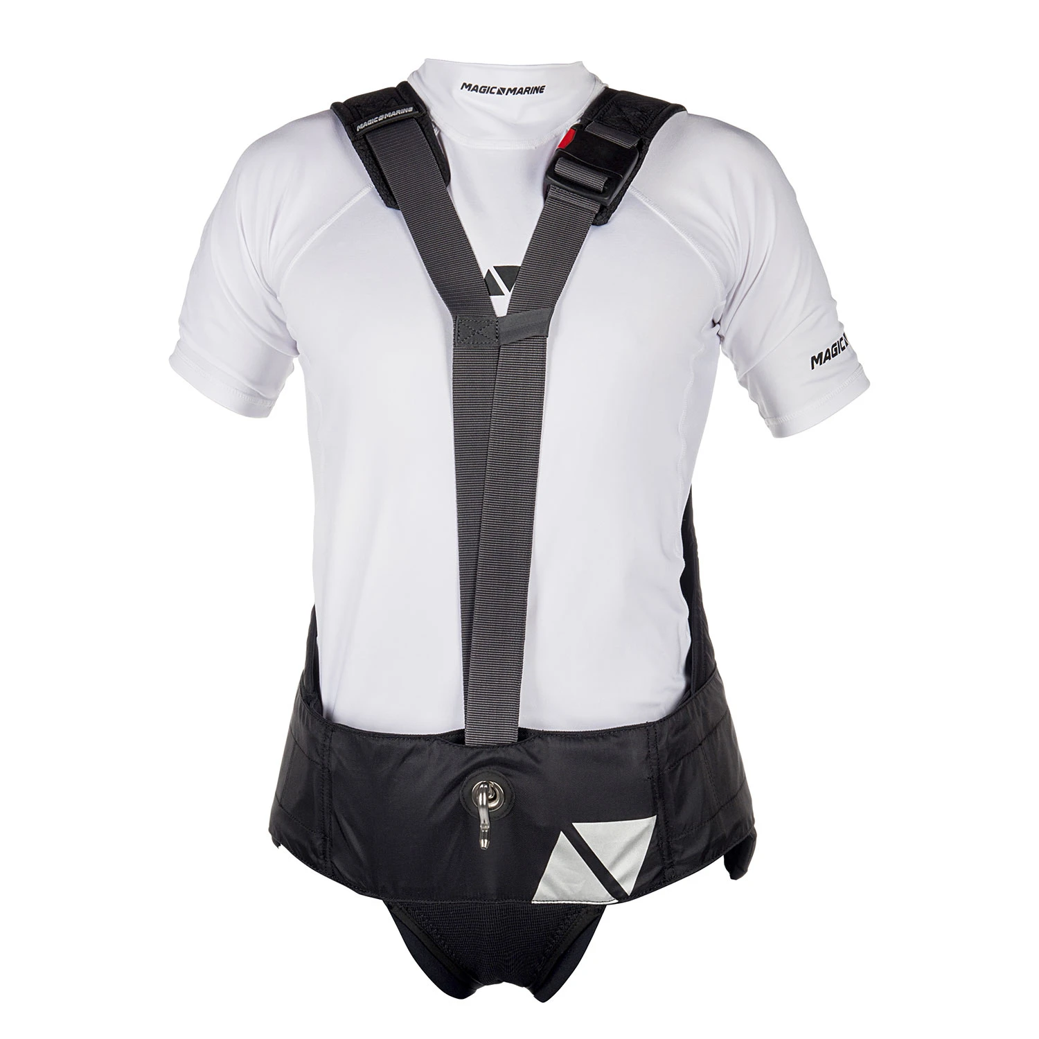 Designed in collaboration with Martine Soffiatti Grael, 2016 Olympic Gold Medalist and Magic Marine teamrider. This harness offers all round support in the most vital areas. A stiff foam panel in the back supports the two main muscles in your back, where a thinner panel at the spine allows for freedom of movement. The back panel is widened to give full support to the back with additional softer foam panels extending at each side of the back. There is NIA foam used in the hip panels to add further protection from impact whilst improving comfort at the hips. A wide spreader bar has been developed to spread the load around the body and improve posture. This can be adjusted with the 4-part adjustment system to ensure a good fit for every individual, where the adjustment allows the harness to be adjusted through the mid back and the butt parameters. All parts of the harness have been designed with the sailor in mind to promote longer durations on the wire, whilst limiting potential back and hip pain. Ideal for strong wind conditions.